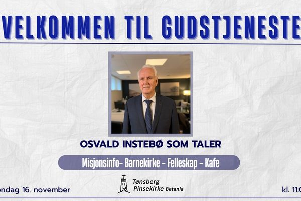 Velkommen til Gudstjeneste på søndag 16.november - kl 11:00 med Osvald Instebø som taler! ? Med Misjonsinfo, Barnekirke, Felleskap og Kafe ?