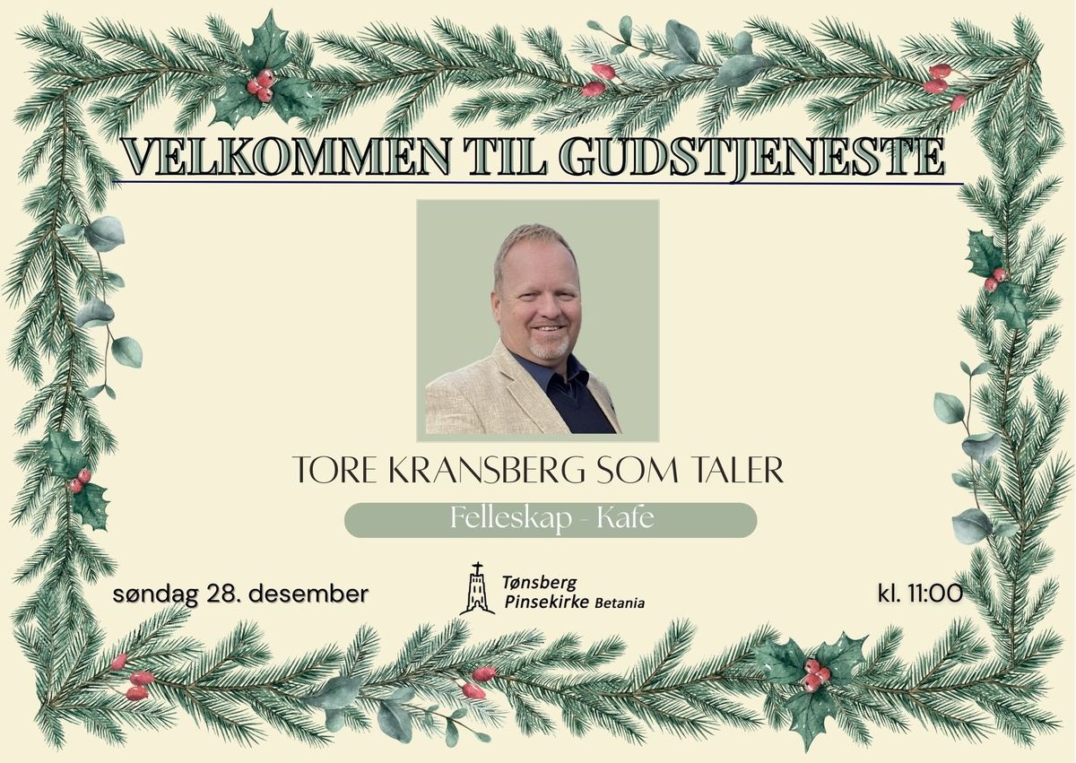 Velkommen til Gudstjeneste på søndag 28.desember - kl 11:00 med Tore Kransberg som taler! Med Felleskap og Kafe